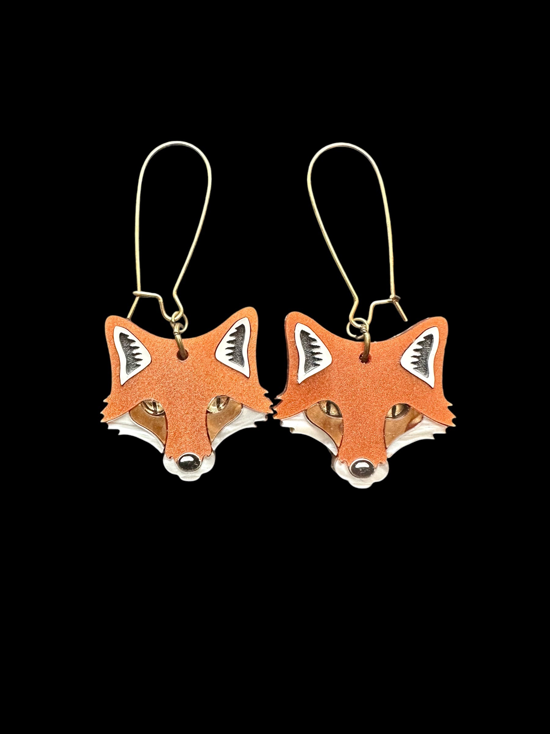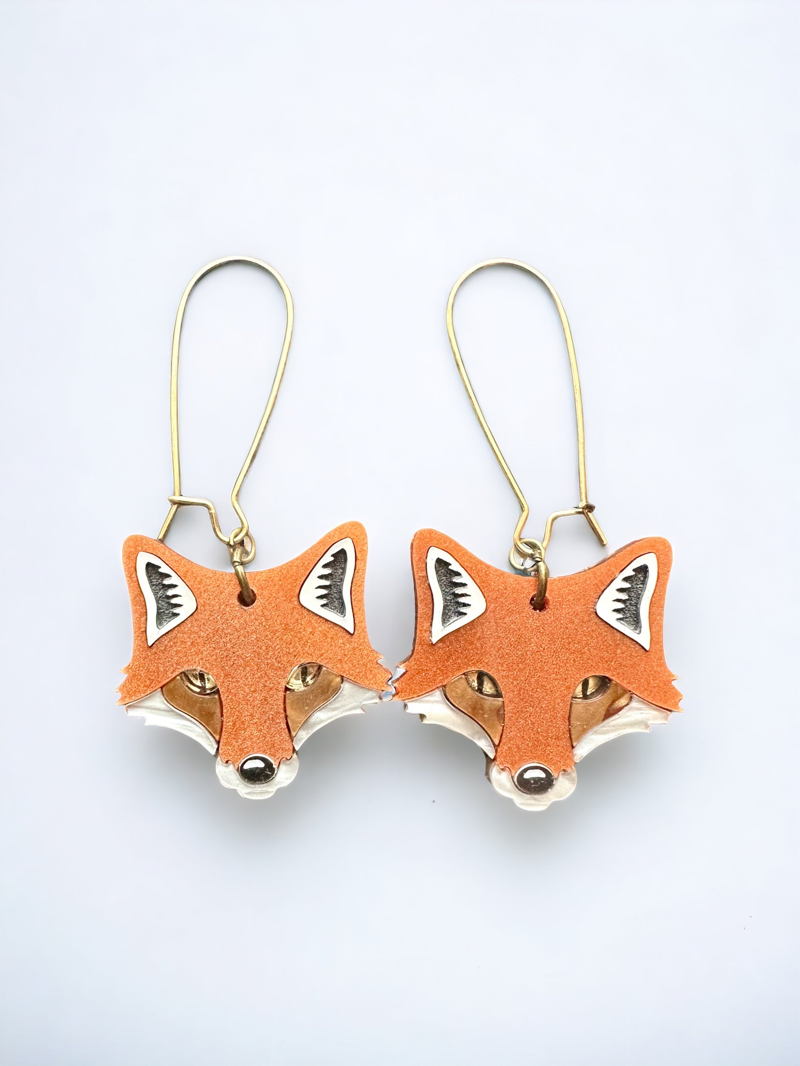 Acrylic earrings depicting a red fox. These earrings are perfect for adding a touch of nature to your style. Embrace your inner wildness and make a statement with these unique earrings. 1.5” wide, 2.5” long with earwires.